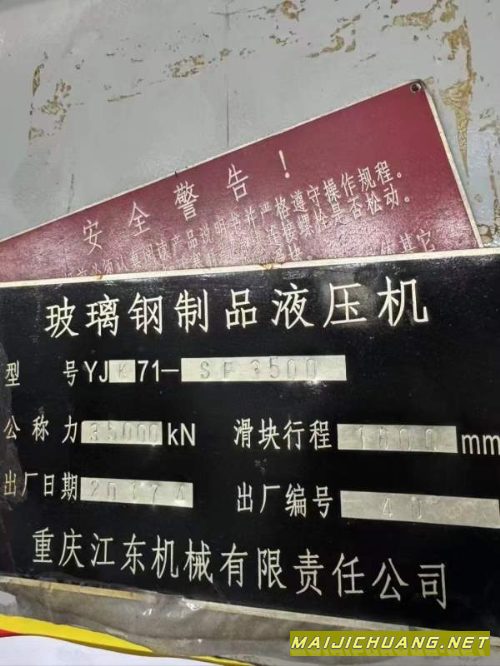 江东产玻璃钢框架3500吨,台面2800*3500,行程1600,开口2400在位出售_