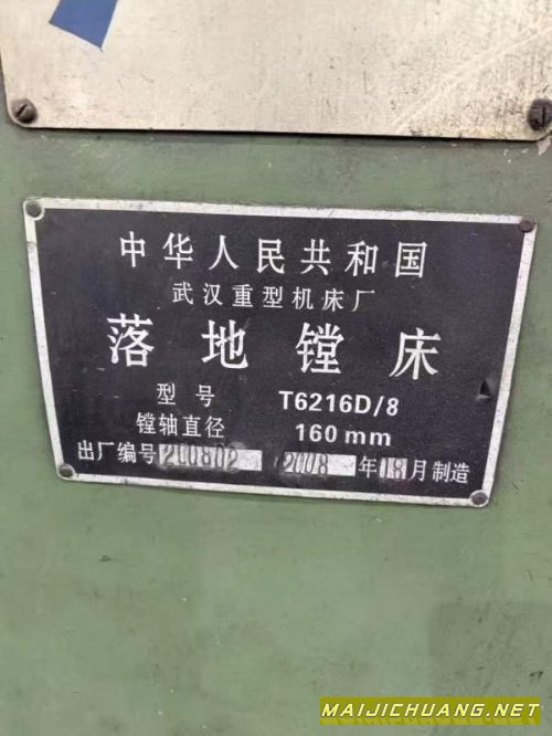 :武重T6216D/8落地镗床,加工高度3米,加工长度6米,带.