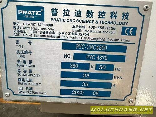 普拉迪型材加工中心PYC-4500一台,发那科MF?Plus系统,主轴BT40主轴10000转,主轴功率11kw,重型45滚柱线轨,工作台650215;4500mm,机械手刀库24T,整机全铸造床身,带链排,需要联系。 设备在苏州 信息编号:S716733 |