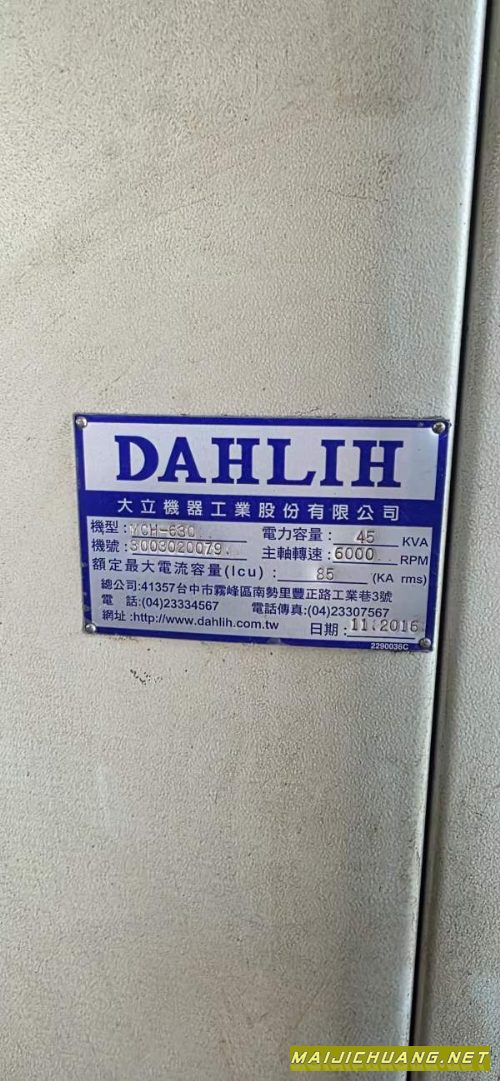 :台湾大立630卧加回转交换双工位,BT50齿轮头,三轴光.
