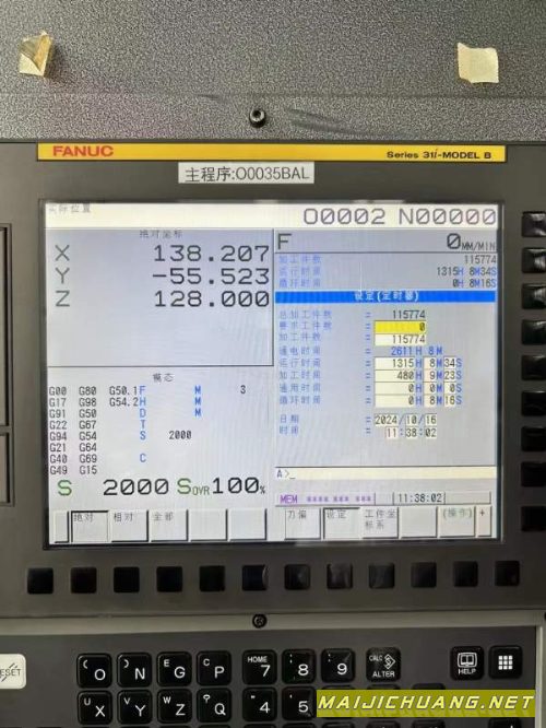 用了480个小时9成新那发科-D14MiB钻中攻心、14把刀库、主轴转速10000rpm,三轴行程0,BT30刀,柄带模具包功大内,存网络输传功能发,那科31i-MODELB系统,安装少用、新机精度、说明书齐全
