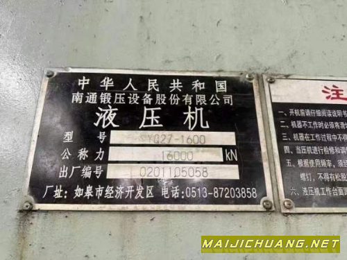 沈阳工厂2台南通框架液压机一台1600吨,有效台面2.5x4.