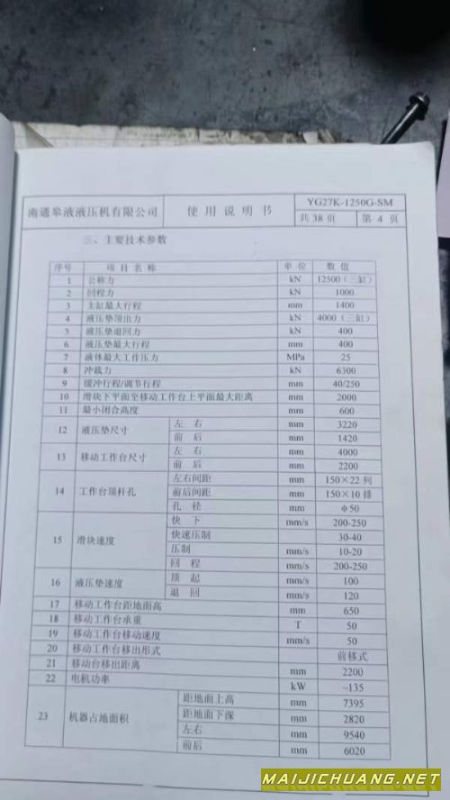 南通皋液框架1250吨液压机台面2.2/4米多点顶出移动台,安装少用,在位出售,可试机_