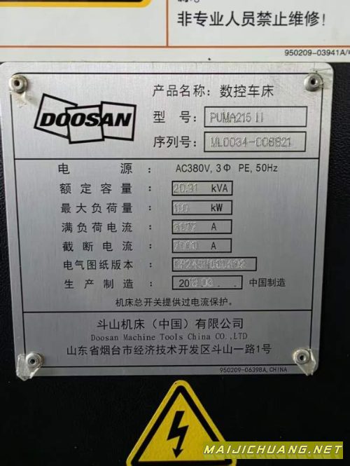 :2018年出厂韩国斗山PUMA215,回转直径510,加工长度52.