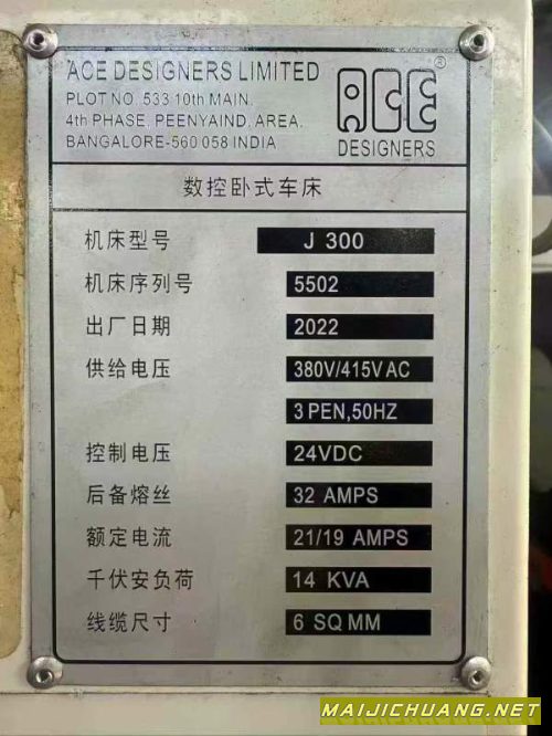 产品名称:印度ACEJ300数控车床,同款三台,2022年出厂,法纳克T.