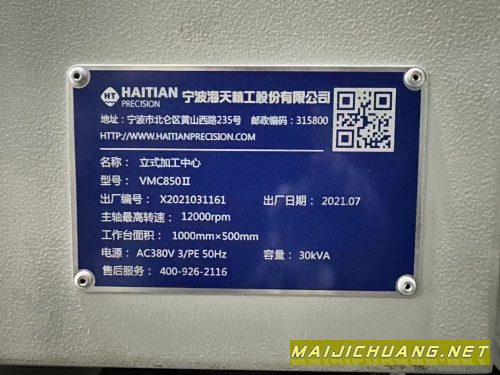 产品名称:2台 基本全新海天精工850II加工中心