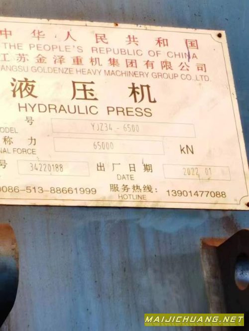 6500吨油压机!工作台2.2x3.7米!行程1.5米!开口2米.