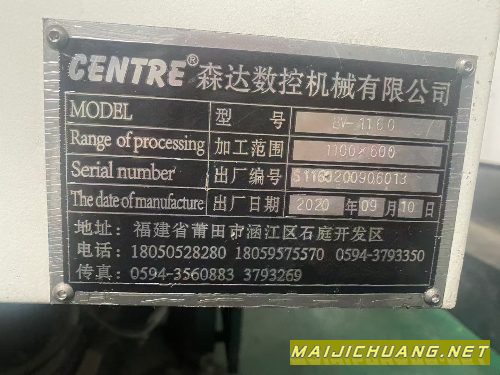 准新机:2020年福建森达1160加工中心,主轴1万转,发那.