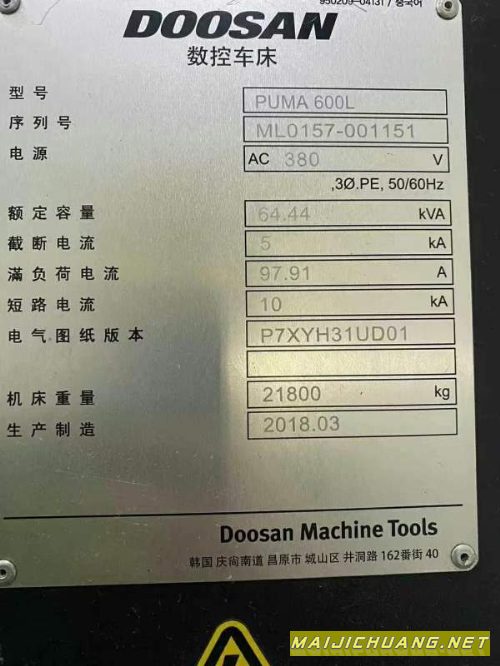 刚刚买下一台9成新韩国原装进口斗山PUMA600L数控车床.