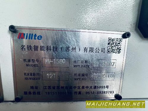 产品名称:名铁1580数控铣,2023年设备 宁波工厂在位使用 两线一硬轨道,50主轴 带链.