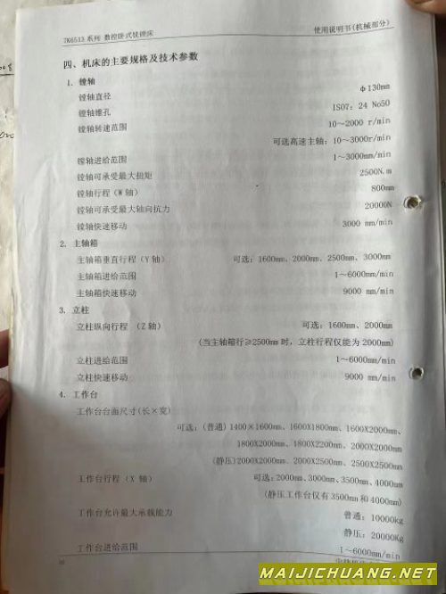 出售:2009年中捷6513落地镗床! 工作台.