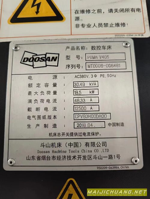 2018年斗山PUMA V405立车,12寸液压卡.
