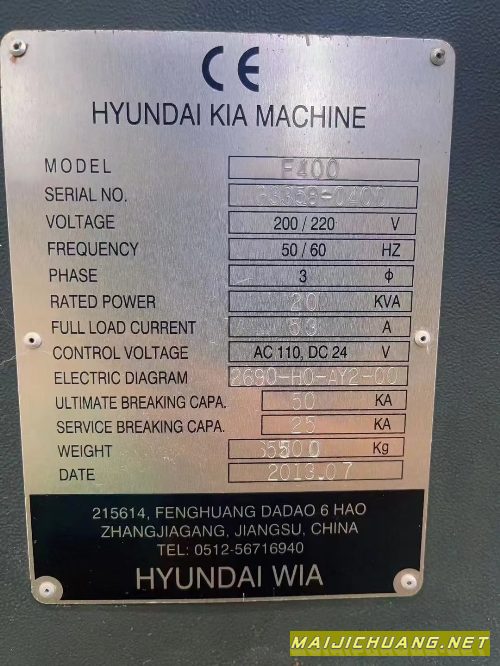 韩国威亚F400 工作台:1000x460mm 主轴.