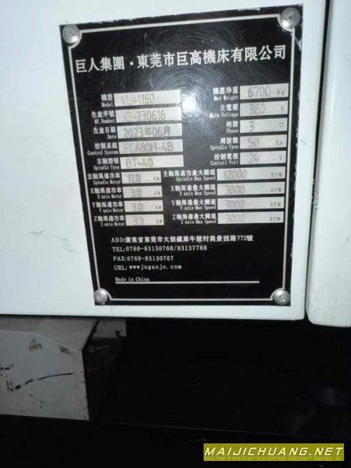 新品上架!巨高精机1160加工中心,2023.