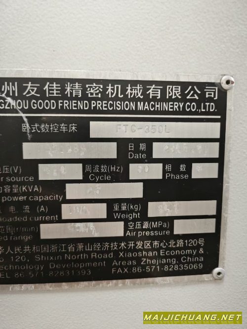 刚买下:友佳350L数控车床,10寸卡盘,.