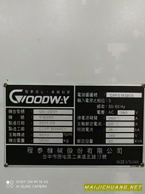 出售.:2017年台湾程泰,GS200Y车铣中心.