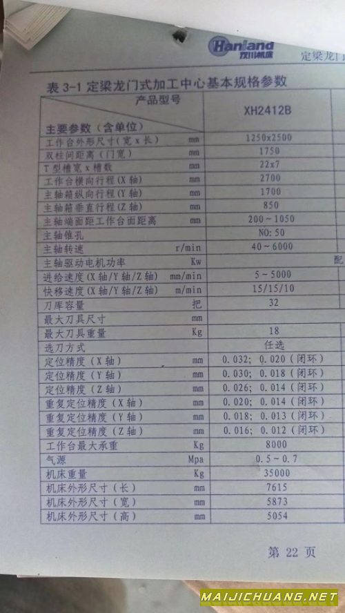 台湾进鸿2215龙门加工中心,两线一硬,.